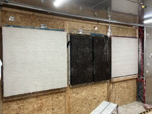 Following a 60-day monitoring of the walls in their existing state the chamber operation was paused and the four walls were retrofitted with a range of different external wall insulation (EWI) materials including woodfibre and cork, which were added to the external face and then rendered. One of the test walls was partially deconstructed and the entire outer leaf of brick replaced with a highly insulated timber frame and rainscreen solution to investigate deeper retrofit options. Once all walls were retrofitted there followed a drying period which was then followed by a 40-day post-retrofit monitoring campaign.